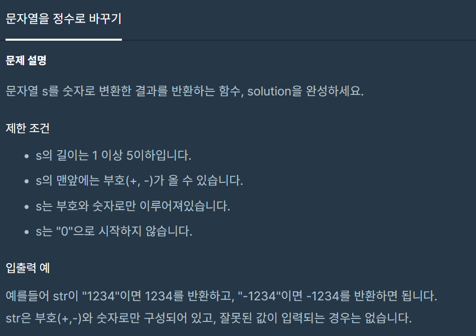 코딩테스트 연습 - 문자열을 정수로 바꾸기
