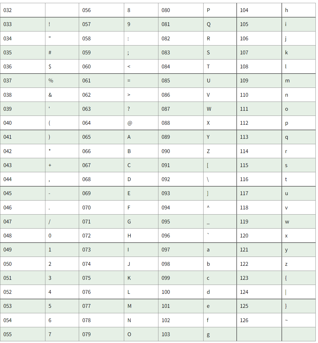 ✔ASCII chart