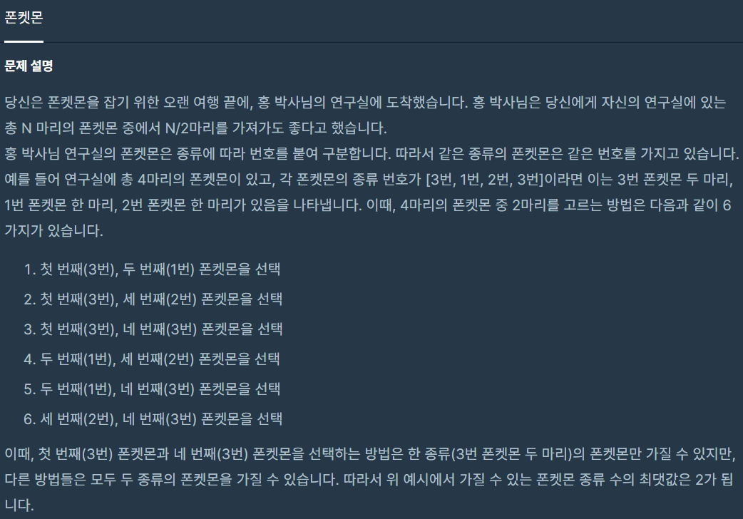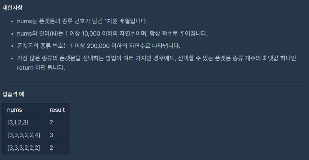 코딩테스트 연습 - 폰켓몬
